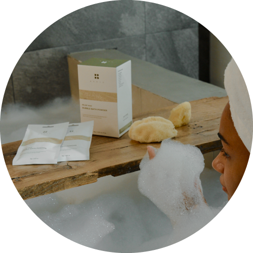 Empty one sachet of bubble bath powder into the tub, then fill with water using the showerhead. Enjoy a bath surrounded by rich bubbles that last for up to 90 minutes.